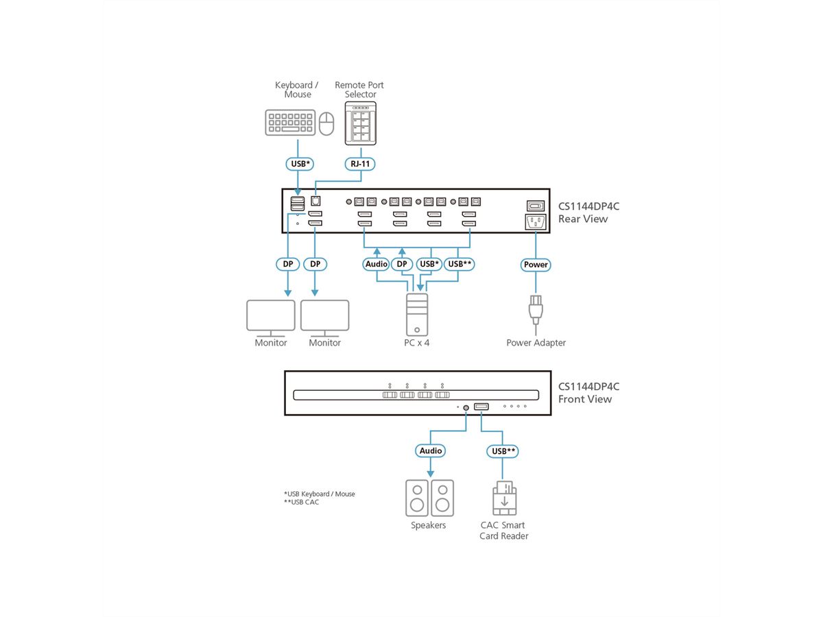 ATEN CS1144DP4C 4-Port USB DisplayPort Dual Display Secure KVM Switch, mit CAC