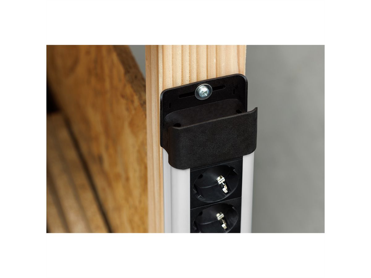 CONNECTUS Steckdosenleiste - Kunststoffprofil mit Designendkappen - Inkl. Langloch zur Wandmontage und Befestigungsmöglichkeit für Kabelbinder - 1xSchalter 2-polig - 6xSchutzkontaktsteckdosen, schwarz - 1x Überspannungsschutz - Graues Profil mit schwarzen Endkappen - Zuleitung 2,0m H05VV-F3G1,5mm², schwarz - mit Schutzkontaktwinkelstecker - verpackt im Polybeutel