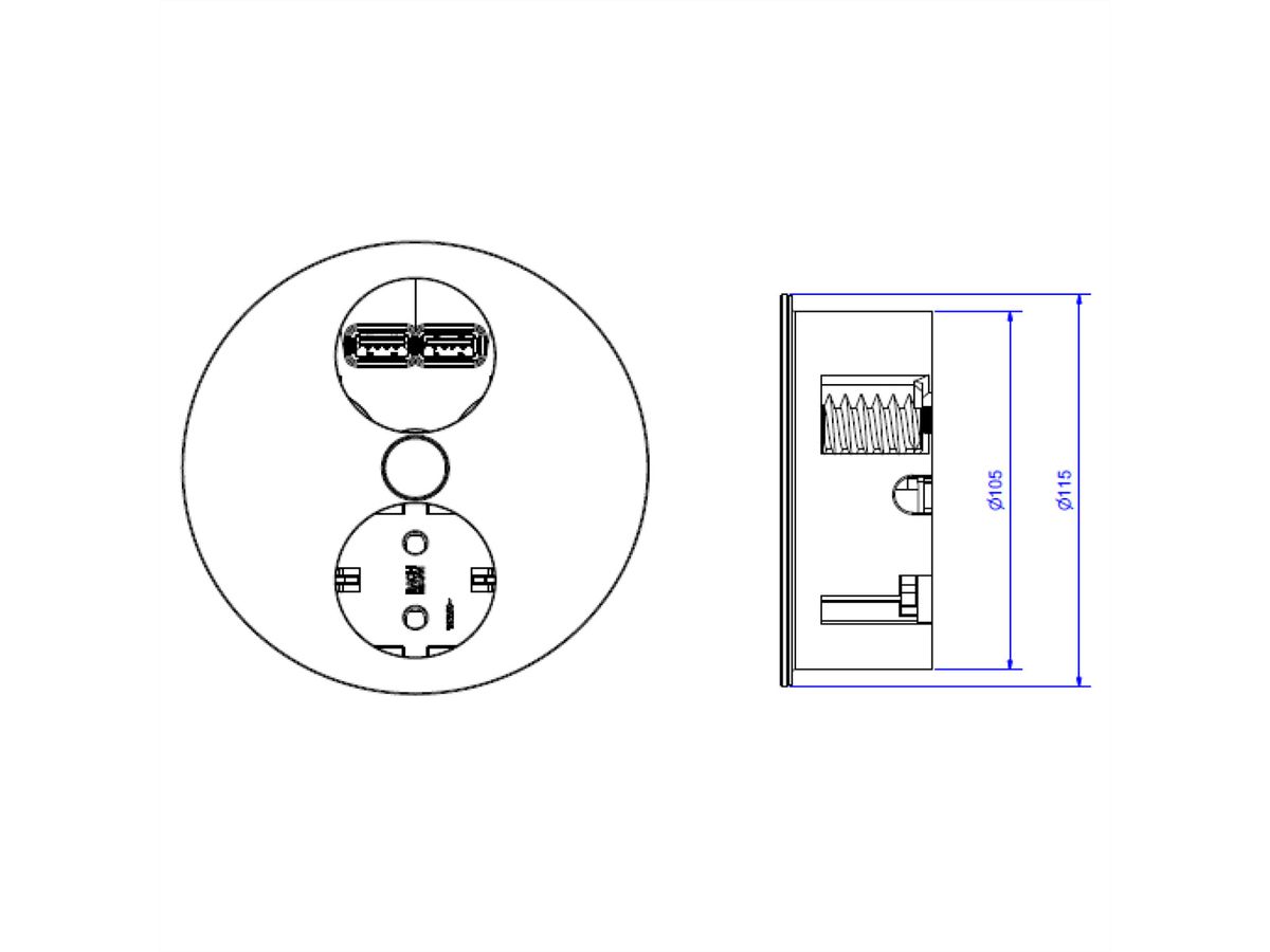 TWIST ist eine Steckdoseneinheit für Wohn- und Arbeitsumfeld wie Büro, Lounge oder Küche. Dank kompakter Bauform und geringer Einbautiefe wird sie platzsparend in Schreibtische oder Küchenarbeitsplatten integriert.