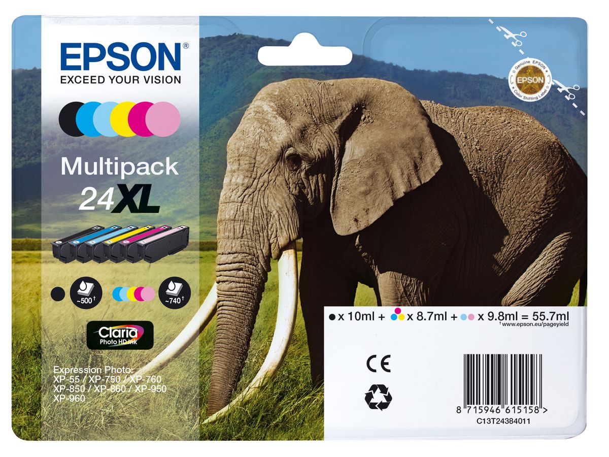 Epson Elephant Multipack 6-colours 24XL Claria Photo HD Ink