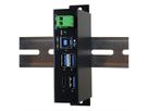 Port 1 ist mit einer neuen C-Buchse ausgestattet. Es ist somit möglich bis zu vier externe USB Peripheriegeräte an einen USB 3.0 Port vom Rechner im 19" Rack anzuschliessen. Er kann in Automatisierung– und Büroanwendungen verwendet werden. Der HUB erfüllt die speziellen Anforderungen von Industrieanwendungen.