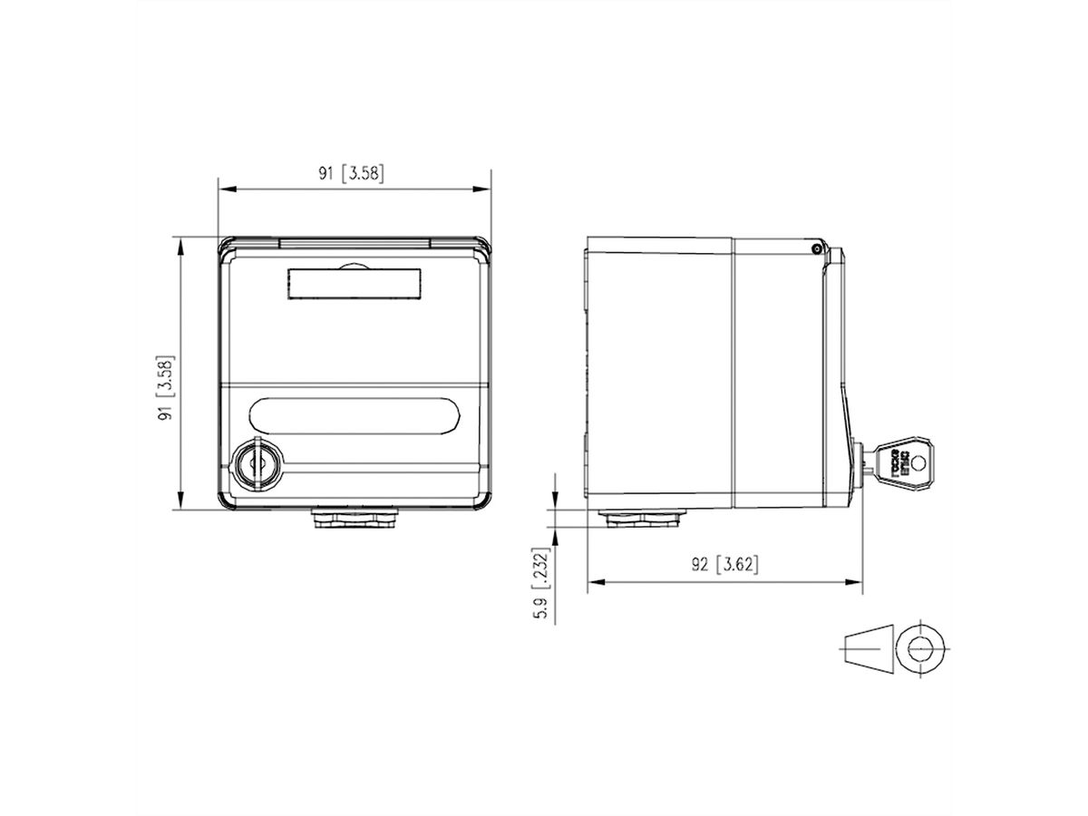 • Abschließbare Aufputzdose IP44, mit zwei Schlüsseln mit gleichschließendem Schloss (gleiche Schlösser und Schlüssel)