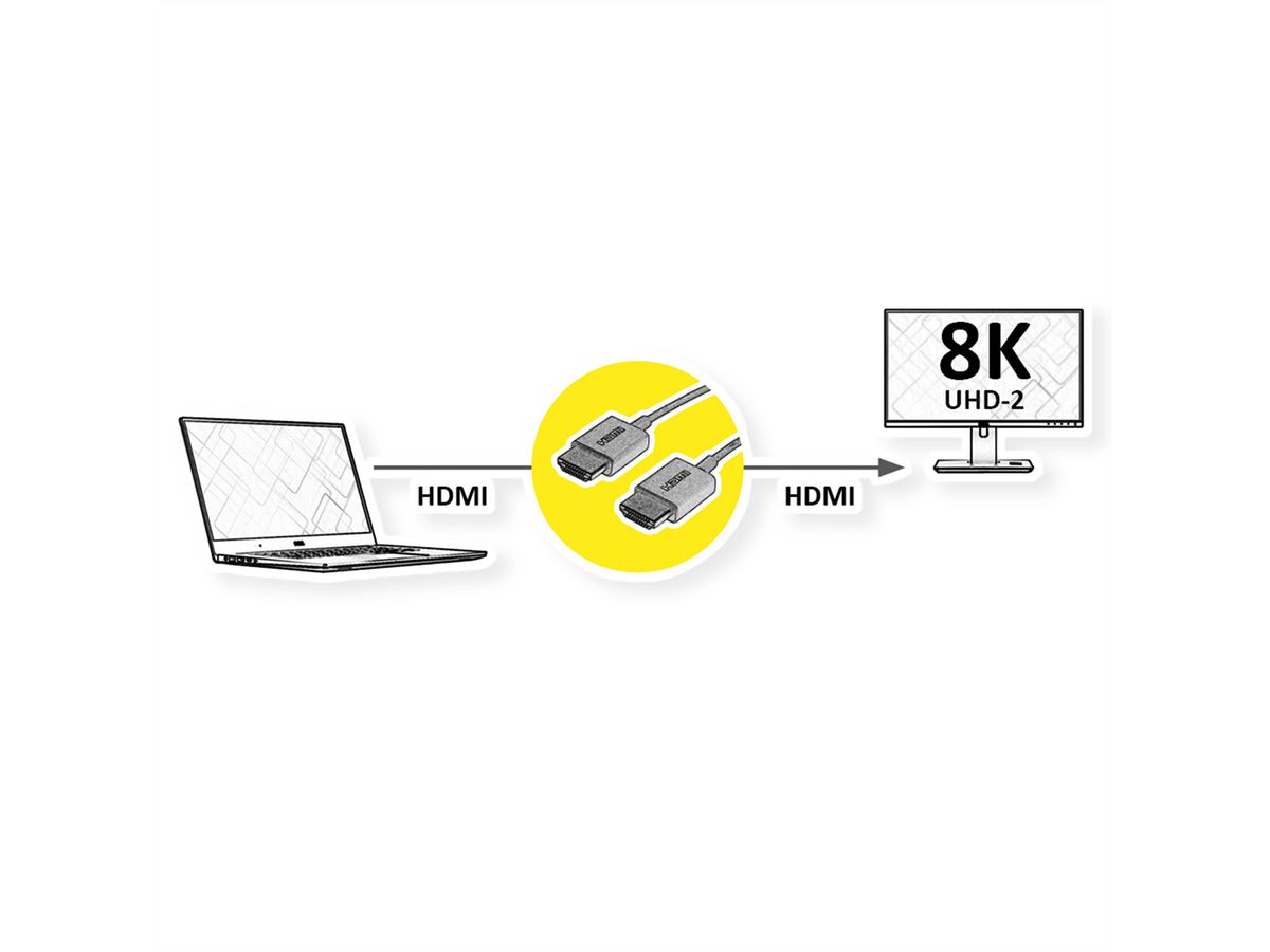 ROLINE 8K HDMI Ultra HD Kabel mit Ethernet, ST/ST, ultra-slim, koaxial, schwarz, 1,5 m