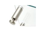 Hochwertiger, höhenverstellbarer Glastisch. In den ausgeklügelten Metallfüßen befindet sich ein Gewinde, mit dem der Glastisch perfekt für die jeweilige Oberfläche justiert werden kann.