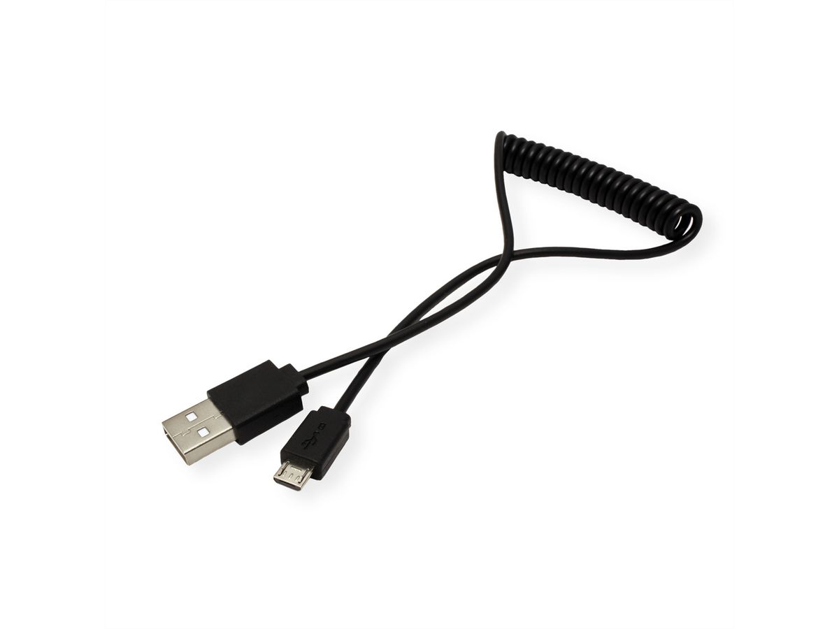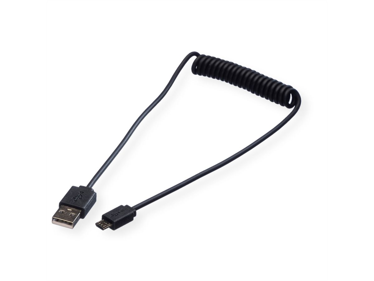 ROLINE USB 2.0 Spiralkabel, A - Micro B, ST/ST, 1 m