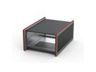 Hochwertiger Schutz für Ihre elektronischen Komponenten in modularen 19"-Desktop-Gehäusen RatiopacPRO Style. Heben Sie die Identität Ihrer Marke mit anpassbaren Designoptionen hervor. Desktopgehäuse mit Schutzrahmendesign und Gummistreifen rund um den Rahmen, für noch mehr Schutz. Gehäuse für 19"-Komponenten (Führungsschienen) oder proprietäre Komponenten (Montageplatte). Für die Etablierung einer EMV-Schirmung, müssen dem Gehäuse zusätzliche Komponenten hinzugefügt werden. Vorderseite für Frontplattenmontage ohne Schrauben und Rückseite für Standard-Frontplattenmontage vorbereitet