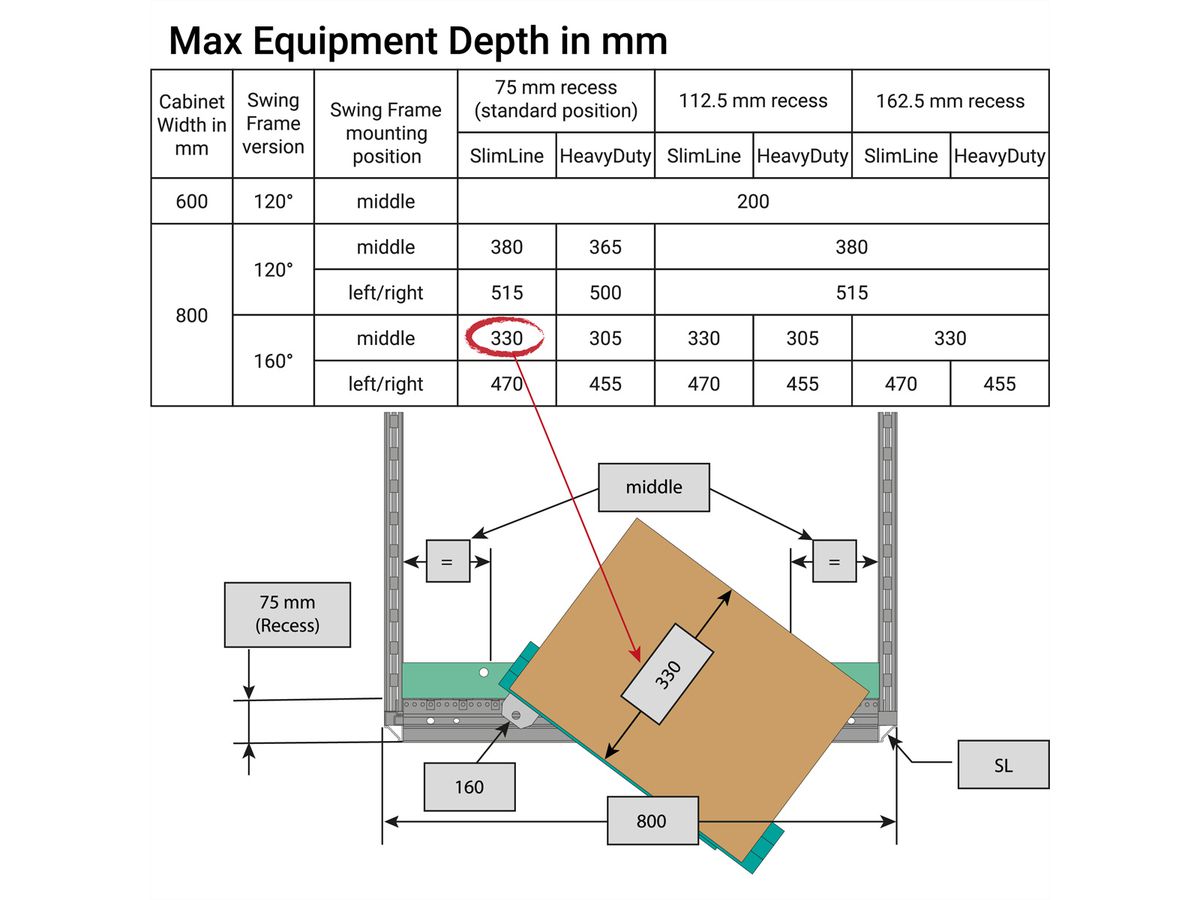 SCHROFF SCHWENKRAHMEN 120° 25/29HE 600L