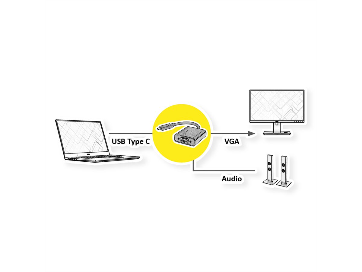 VALUE Display Adapter USB Typ C - VGA, Audio