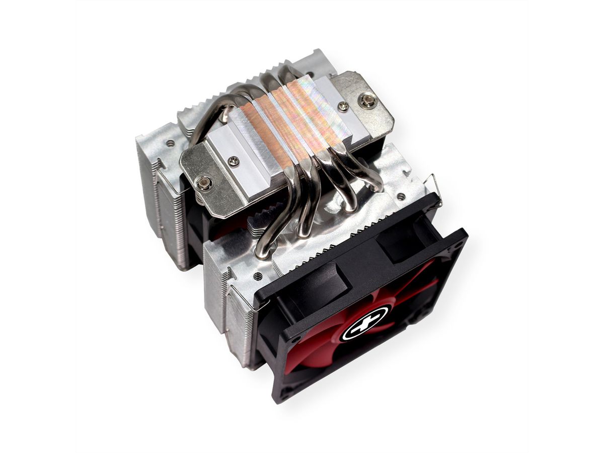 Er verfügt über vier extrem leistungsfähige Heatpipes, welche 180W Abwärme an die unzähligen Kühlrippen ableiten und ihn so für potente Mehrkern-Prozessoren prädestinieren. Aufgrund des direkten Kontaktes der Heatpipes gestaltet sich der Wärmeübergang zwischen CPU und Kühler äußerst effizient und sehr gleichmäßig. Der Multisockel macht den Kühler auf allen aktuellen Intel und AMD Sockeln einsetzbar. Im Lieferumfang befinden sich neben dem doppelten Kühlkörper und denzwei PWM geregelten 92mm Lüftern je ein Haltemodul für die Sockel LGA 1150/1151/1155/1156/2011/1700/2066/1200 und AMD AM5/AM4, eine bebilderte Montageanleitung sowie eine Tube Wärmeleitpaste.