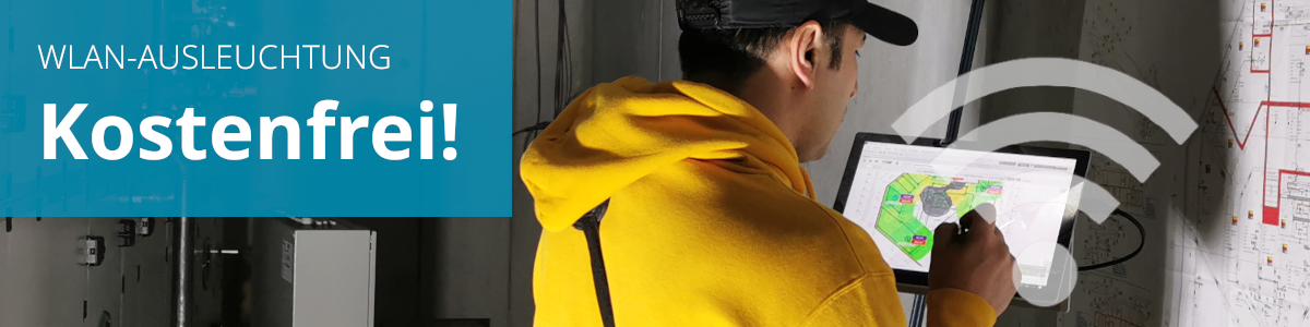 Die Ergebnisse der WLAN-Ausleuchtung, egal ob vor Ort oder bei virtueller Simulation, werden elektronisch dokumentiert und die Positionen und die Reichweite der WLAN-Zugangspunkte in einer Heatmap visualisiert.